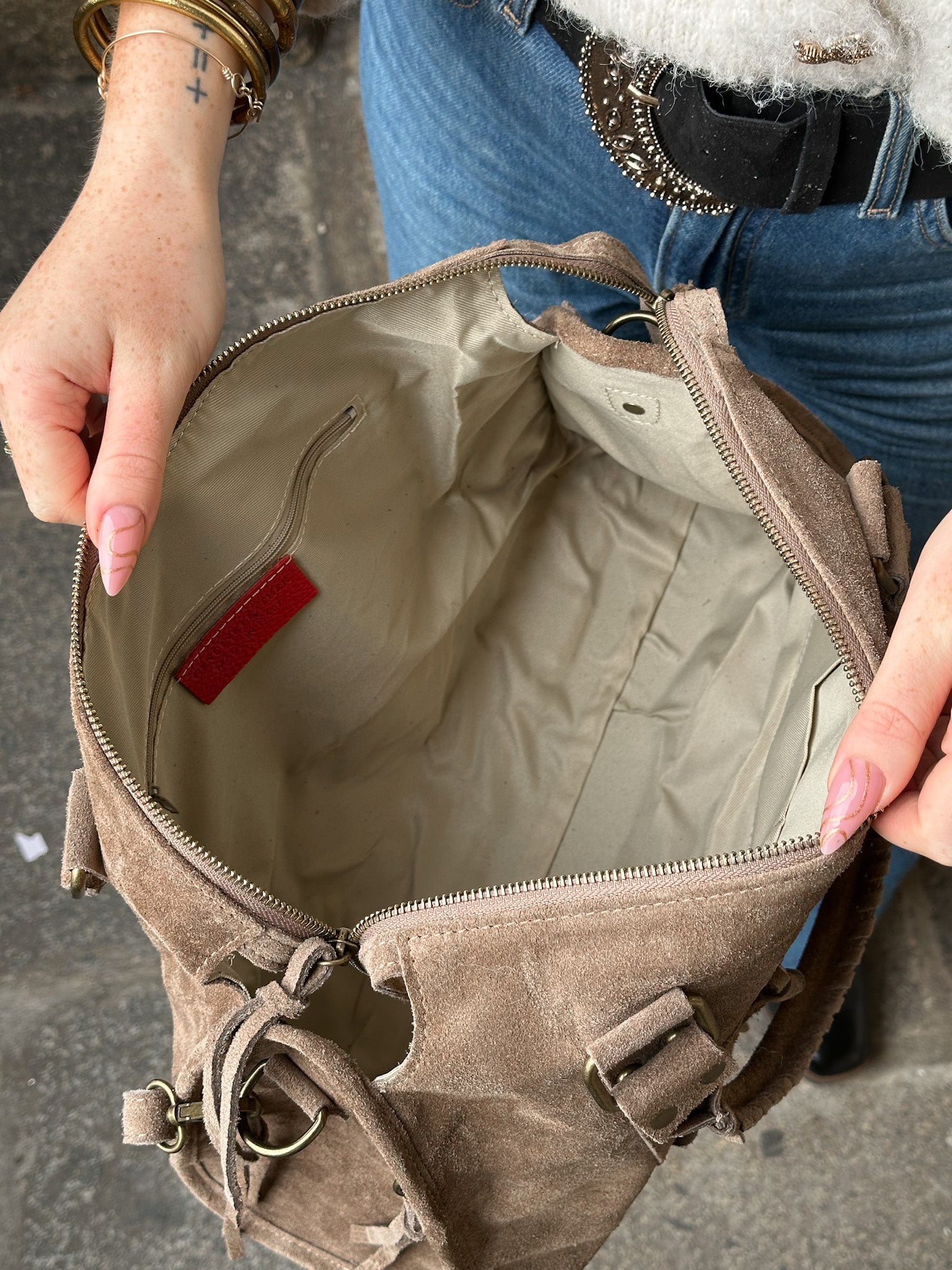 - Suède véritable (cuir velours) : doux, texturé et lumineux, offrant un charme bohème-rock et un toucher premium.