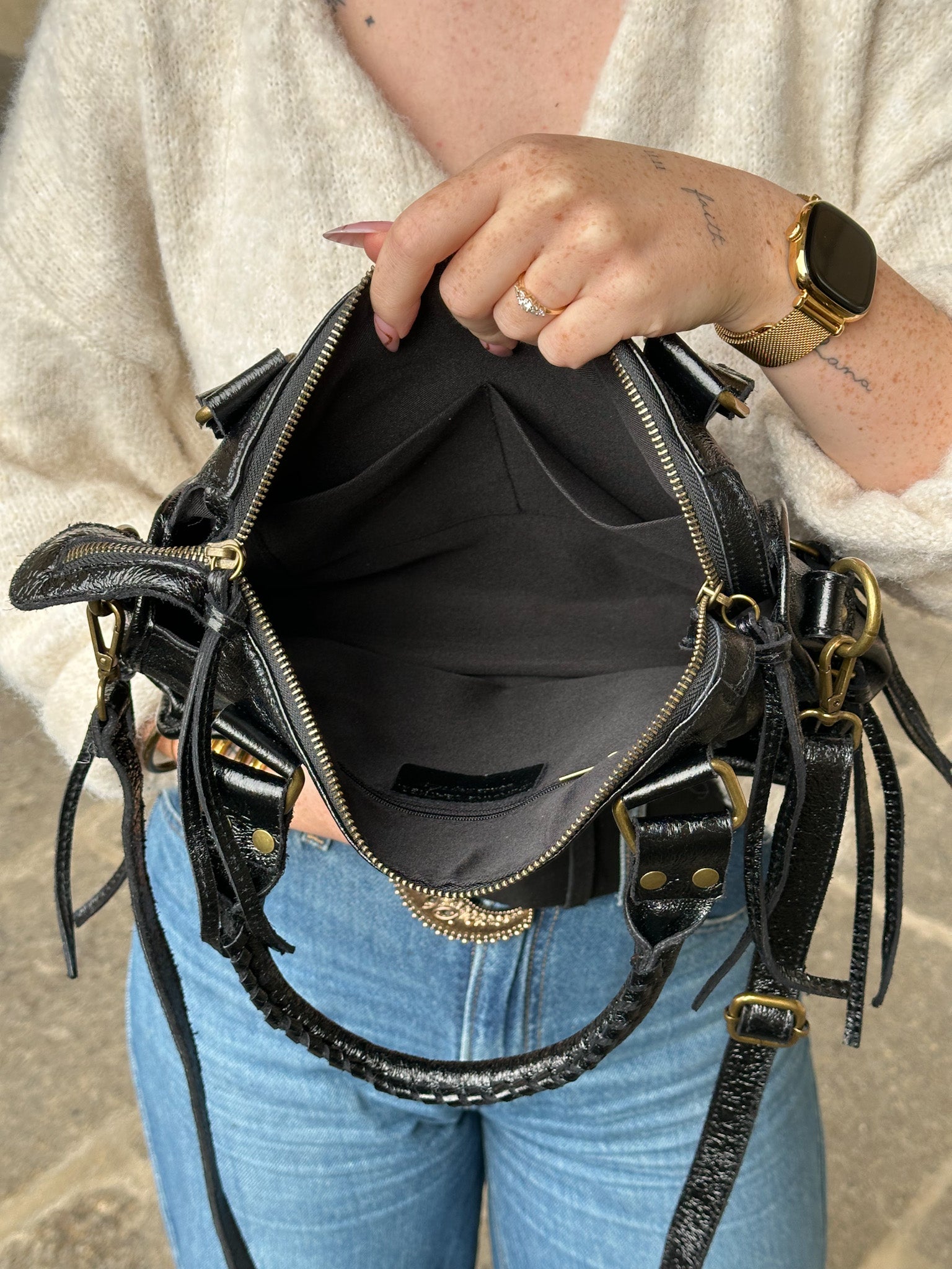 - Détails métalliques iconiques : boucles et finitions élégantes qui apportent caractère et sophistication.